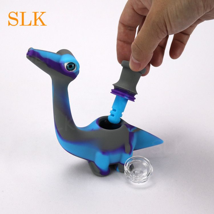 Dinosaur Dab Rigs Cool Smoking Pipes Collapsible Silicone Water Bubbler Water Bongs With Wax Down Stem
